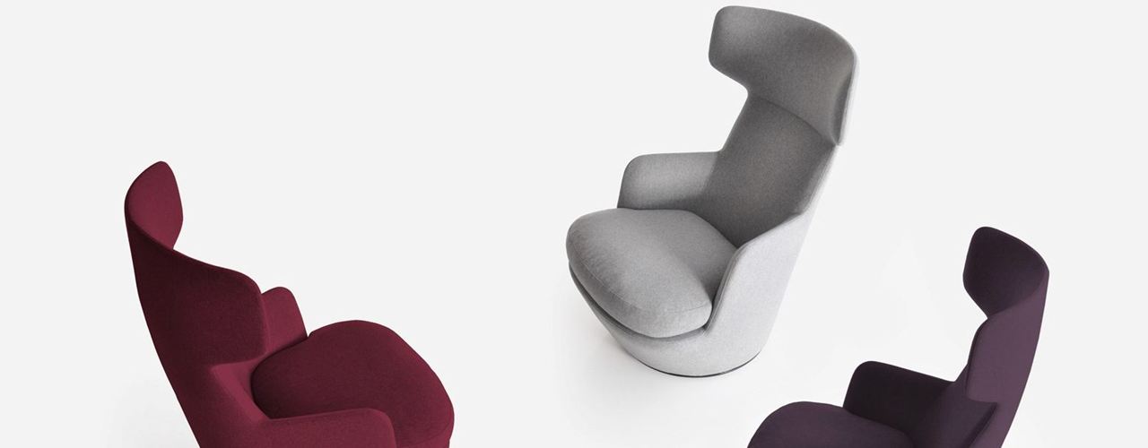 В коллекции представлены яркие и уютные модели, включая кресло My Turn с высокой спинкой.