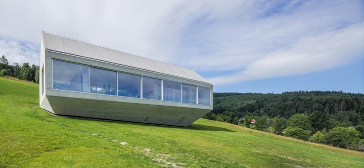Проект Роберта Конечны — это инновационное решение: дом, который буквально плывет по склону, закрепленный на единственном основании. Это позволяет минимизировать воздействие на окружающую среду и ограничить подвижность земли.