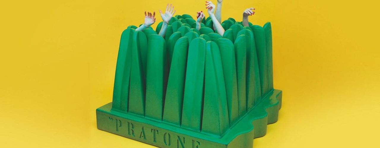 На выставке в Дубае Gufram представит известные работы, такие как диван Bocca и система сидений Pratone.