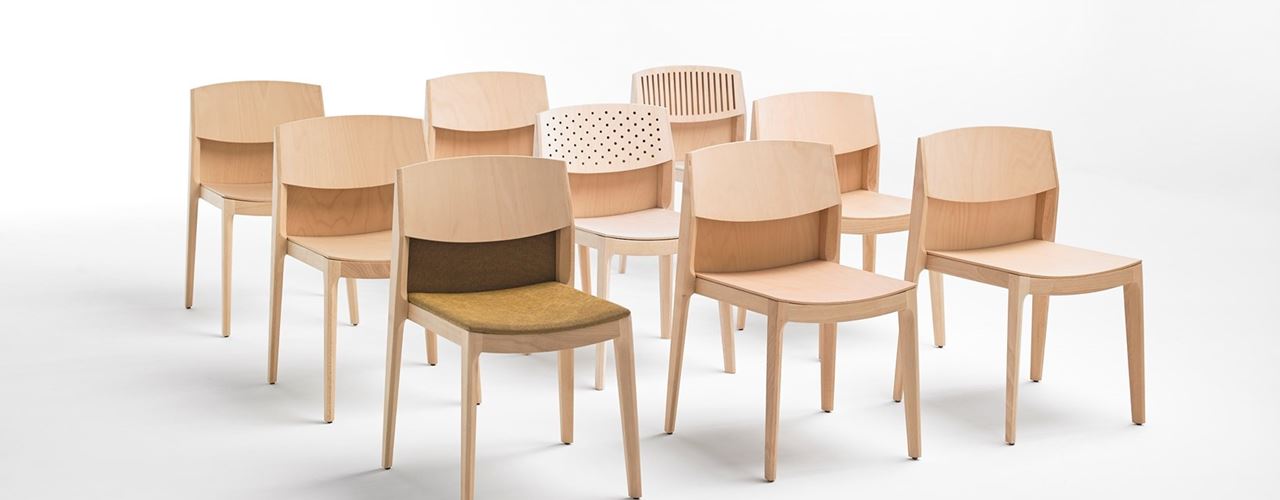 Isa — первый штабелируемый деревянный стул от Висента Мартинеса, отличающийся яркими спинками и вариативностью, что позволяет ему вписываться в любые пространства.