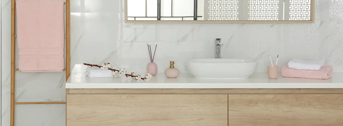 Аксессуары — ваш главный инструмент. Они делятся на три категории: текстильные элементы (коврики, полотенца), функциональные аксессуары (держатели, органайзеры) и декоративные детали (растения, аромадиффузоры). Текстиль добавляет мягкость, функциональные решения устраняют беспорядок, а декор создаёт настроение.
