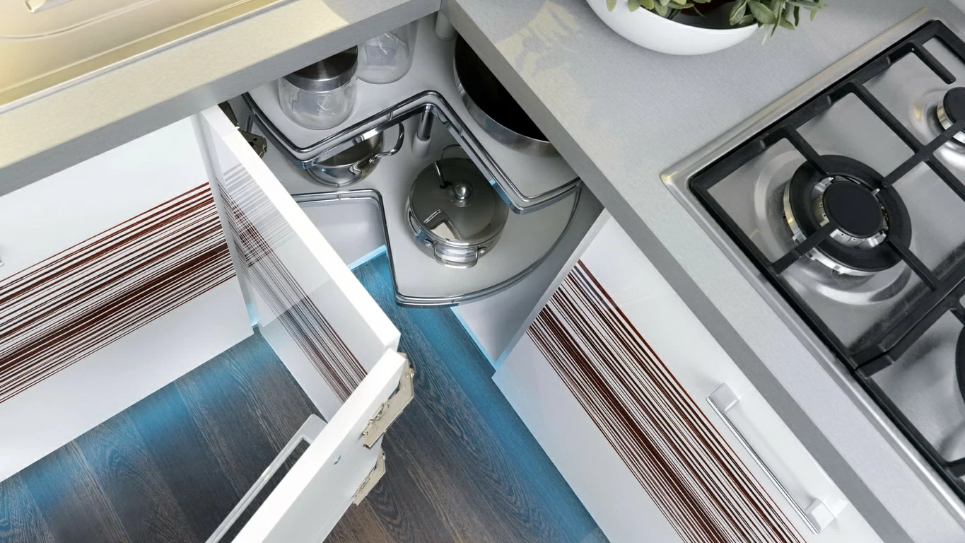 Карусели для шкафов помогают оптимизировать использование пространства. Они обеспечивают лёгкий доступ к содержимому, не требуя наклонов или приседаний.