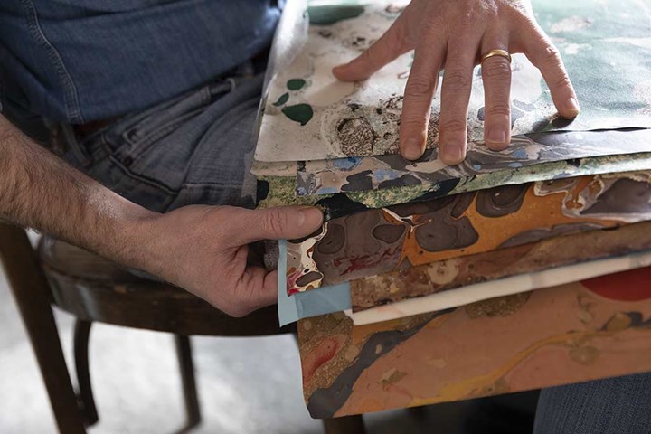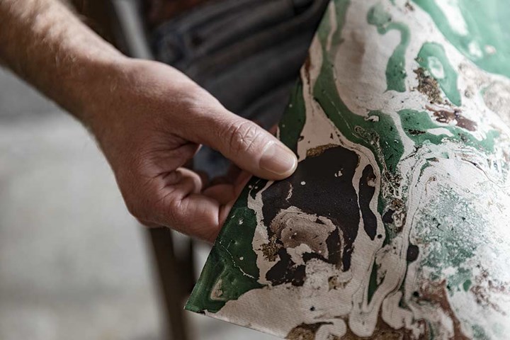 Коллекция использует древние декоративные техники, вдохновленные мраморной бумагой, для создания уникальных текстур.