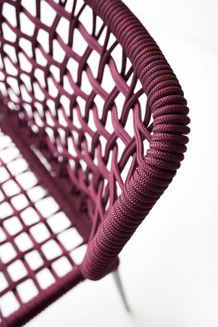 Коллекция Corda включает две модели плетения: простое, напоминающее рыболовную сеть, и сложное, напоминающее узлы на парусных судах. Эти элементы делают мебель не только функциональной, но и стильной.