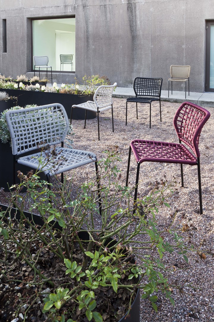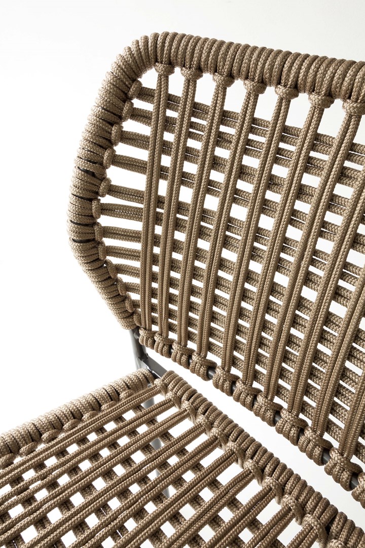 Коллекция Corda предлагает универсальные решения для интерьера. Она включает в себя стулья, кресла и табуреты, выполненные из окрашенной стали и верёвки. Такой выбор материалов делает их устойчивыми к атмосферным явлениям, а также обеспечивает долговечность.