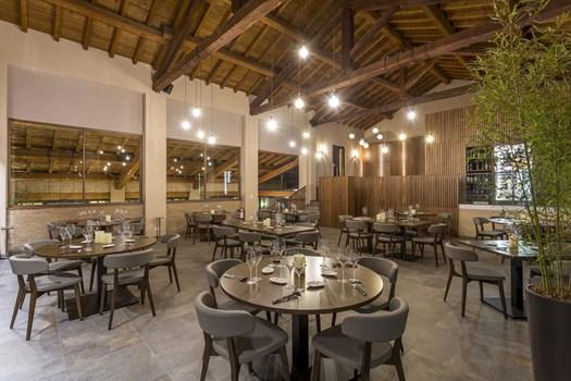 Коллекция В & Out Percorsi от Ceramiche Keope используется в ресторане La Maison du Gourmet, предоставляя не только визуальную привлекательность, но и практичность. Эти плитки известны своей долговечностью и эко-дружественностью.