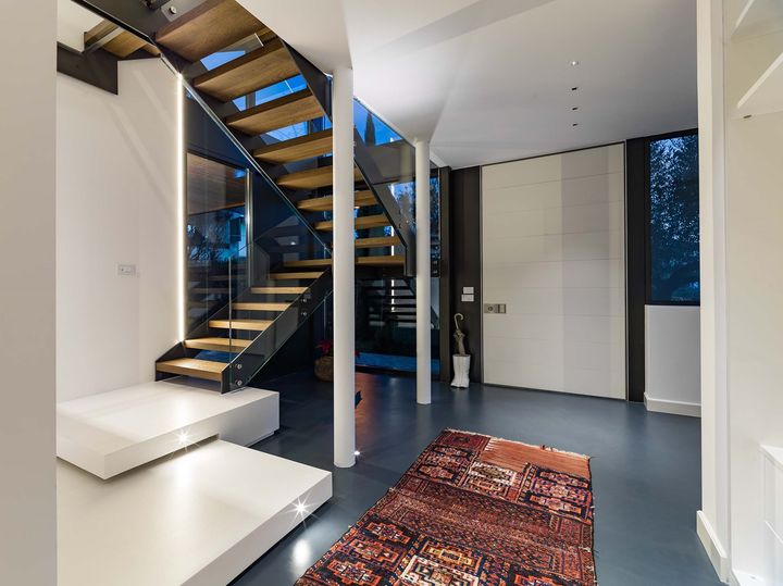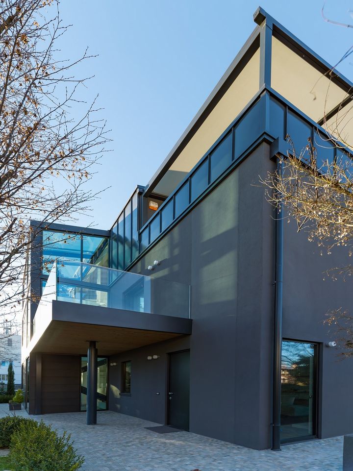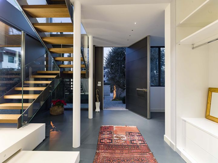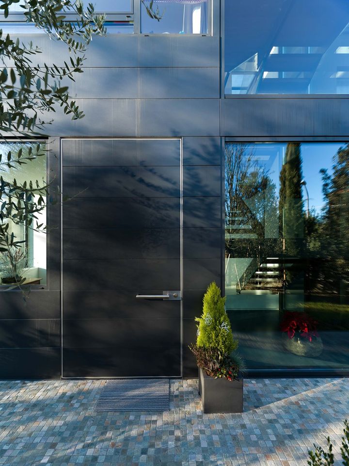 Использование дверей Synua от Oikos позволило достичь высокого уровня безопасности и эстетичности, сохраняя при этом энергоэффективность.