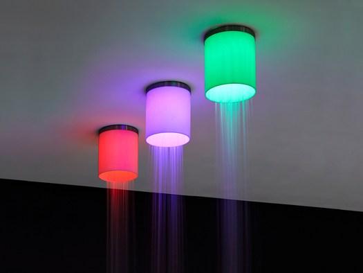 Продукция Антонио Лупи предлагает интеграцию освещения и водных процедур. Душевые лейки с хромотерапией становятся центром внимания в ванной комнате.