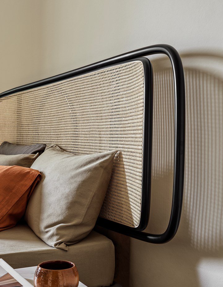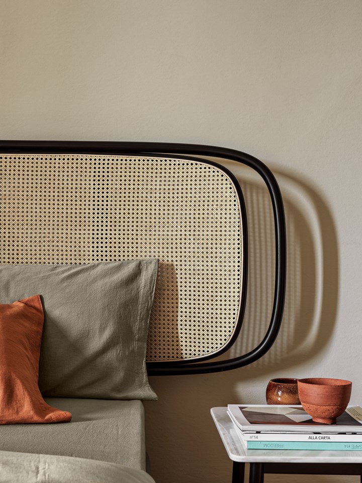 Кресло N.200 отличается гармоничным сочетанием изгибов и минималистичной элегантности. Изголовье Rue предлагает формальную чистоту и уникальный характер благодаря использованию венской соломы.