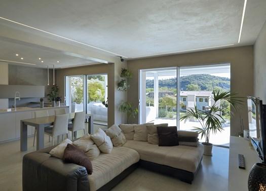 Панорамные раздвижные окна ASE 67 PD от Schüco обеспечивают максимальную яркость и энергоэффективность, создавая ощущение открытого пространства.