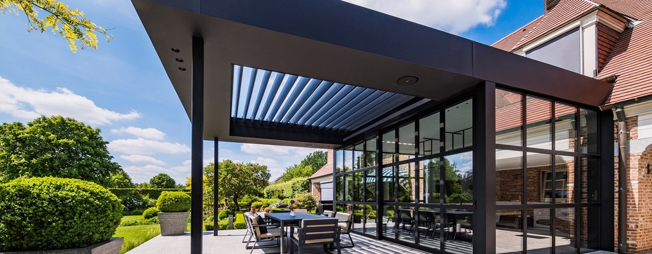 Раздвижные и наклоняемые лопасти крыши Aero Skye обеспечивают оптимальную защиту от солнца и дождя, а также позволяют наслаждаться открытым небом. Вы можете адаптировать систему под ваши нужды и пожелания.