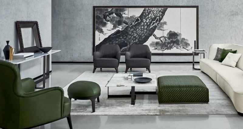 Коллекция Flexform MOOD предлагает изысканные оттенки от лесного зеленого до аквамаринового, которые создают уютную и расслабляющую атмосферу, гармонируя с нейтральными тонами.
