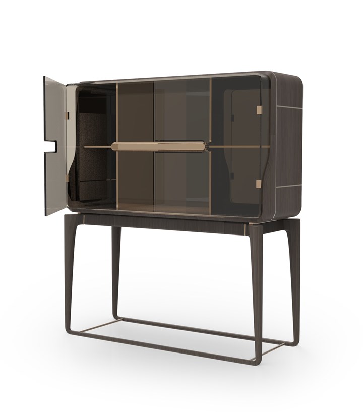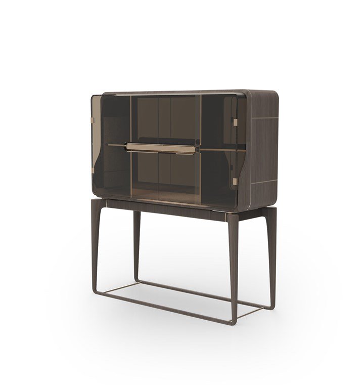 Коллекция сочетает дерево, металл и кожу.