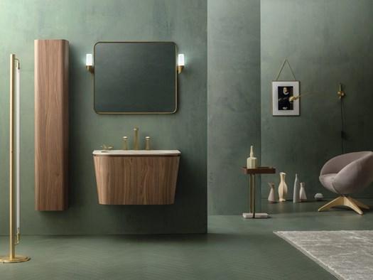 Коллекция Suede сочетает в себе мягкие формы и изысканную отделку, отсылая к стилю 20-х годов. Встроенные раковины и оригинальные решения для хранения делают её идеальной для современных интерьеров.