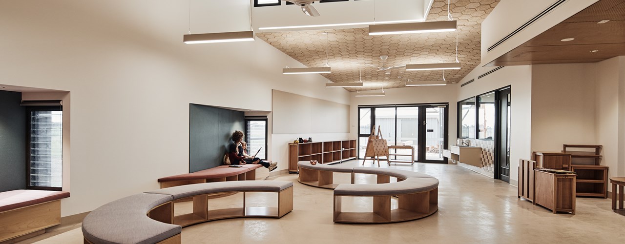 В культурном центре Wunggurrwill Dhurrung плитка BAUX Hexagon используется для улучшения акустических характеристик помещений. Её нейтральные тона и геометрическая форма гармонично вписываются в интерьер, создавая спокойную и комфортную атмосферу. Эти решения подходят как для общественных пространств, так и для частных интерьеров.