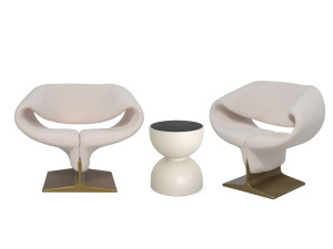 3-местный кожаный диван с журнальной стойкой