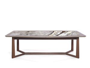 Деревянный прямоугольный обеденный стол с мраморной столешницей