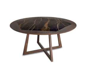 Круглый деревянный обеденный стол с мраморной столешницей