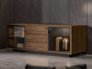 Низкий офисный шкаф из дерева и стекла