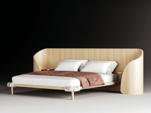 Деревянная двуспальная кровать с мягким изголовьем