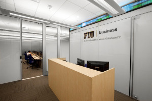 FSRT667 Система облицовки стен Levele глухими панелями; вставки из стекла вивихрома с белой прослойкой и отделкой pearlex +; нержавеющая сталь с льняной отделкой в ​​международном университете флориды - школа бизнеса райдера, медиа-лаборатории, майами, фл