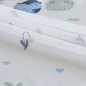 Ткань 1 м/п Совы с зайцами велюр 300 см цвет сине-серый