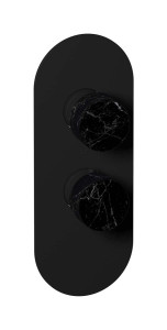 Комплект наружных частей термостата на 1 потребителей - вертикальная овальная панель с ручками Marmo WE ARE IB eua112npnmr_2 Matt Black Aqua