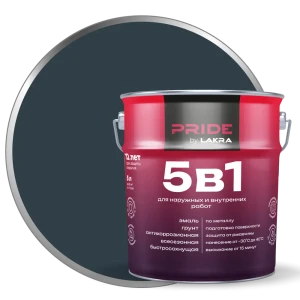 ЛАКРА Грунт-эмаль 5 в 1 для металла и дерева, графит 5 л 89416440