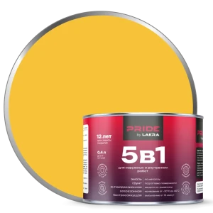 ЛАКРА Грунт-эмаль 5 в 1 для металла и дерева, желтый 0.4 л 89410853