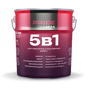 ЛАКРА Грунт-эмаль 5 в 1 для металла и дерева, оксид красный 5 л 89416433