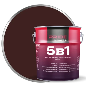 ЛАКРА Грунт-эмаль 5 в 1 для металла и дерева, шоколадно-коричневый 5 л 89416434