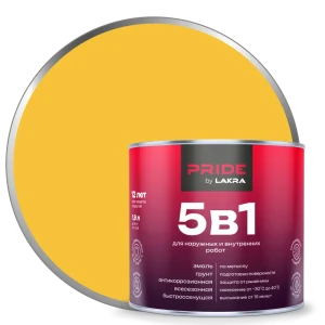 ЛАКРА Грунт-эмаль 5 в 1 для металла и дерева, желтый 1.9 л 89410855