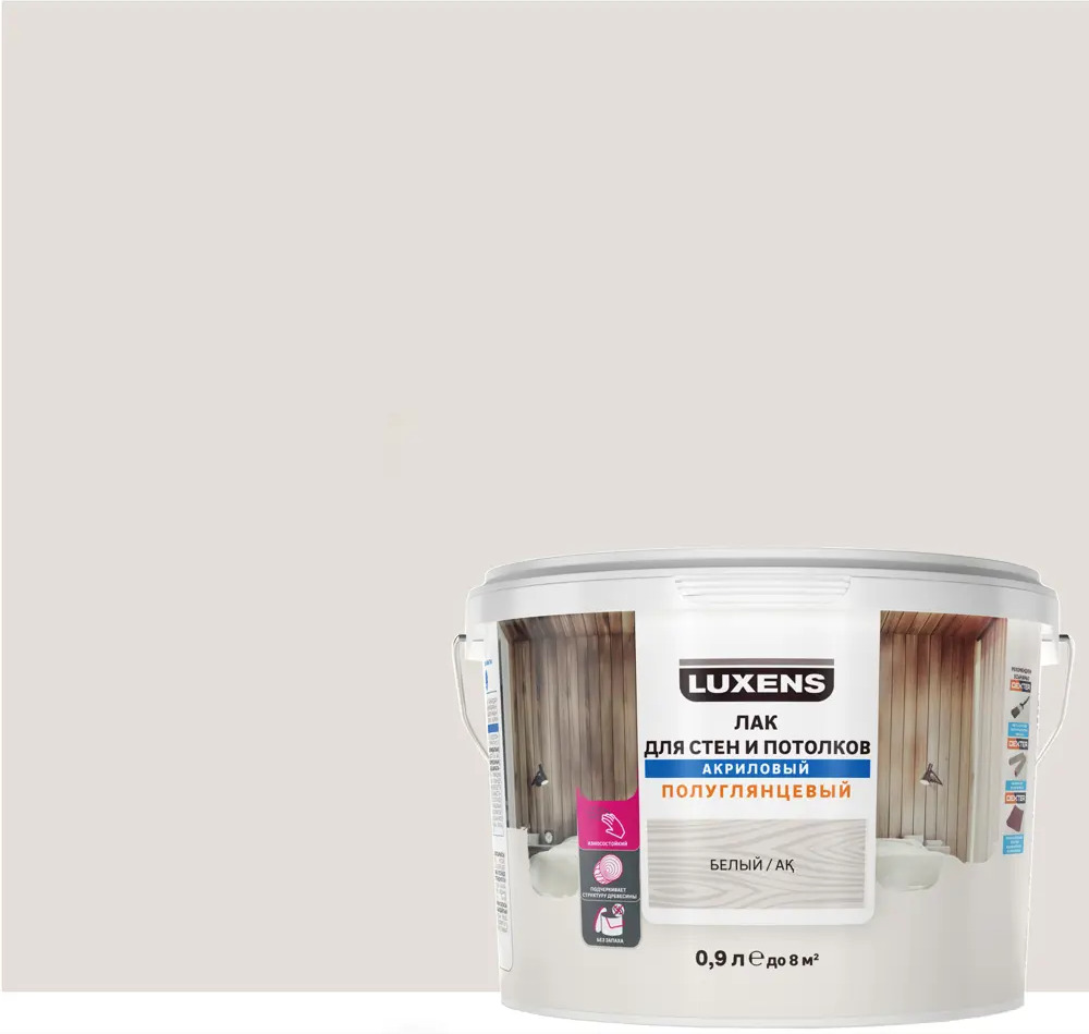 LUXENS Акриловый лак для деревянных стен и потолков белый полуглянцевый 0.9 л 82607763