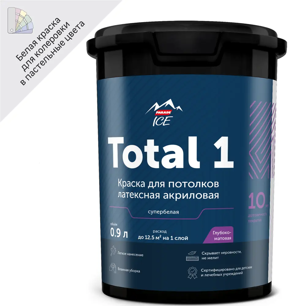 Краска для потолков Parade Total 1 - глубокоматовая супербелая 84871682