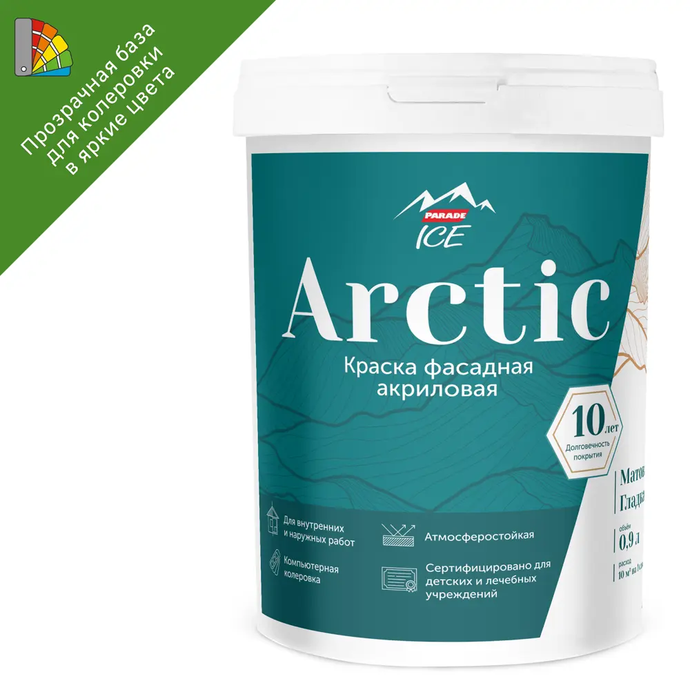 Parade Arctic - фасадная краска матовая прозрачная база С 0.9 л 86382139