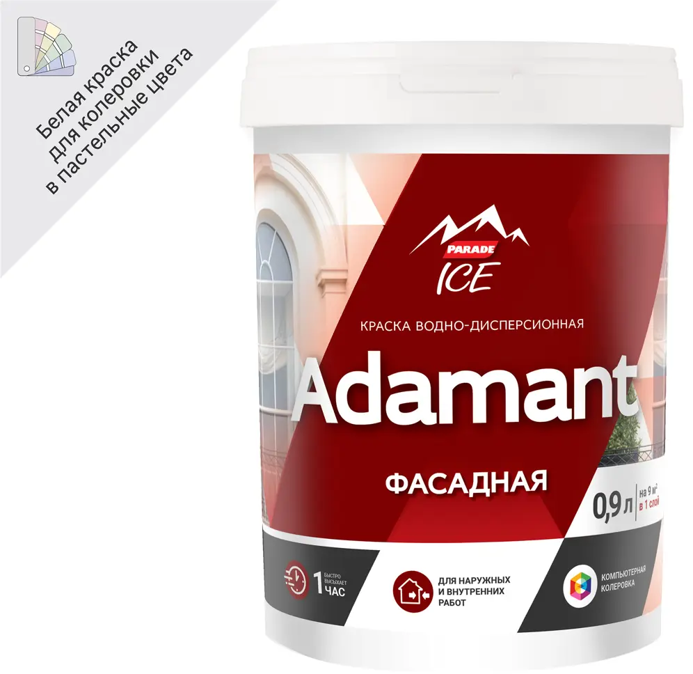 Фасадная краска Parade Adamant белая матовая для внутренних и наружных работ 0.9 л 84388375