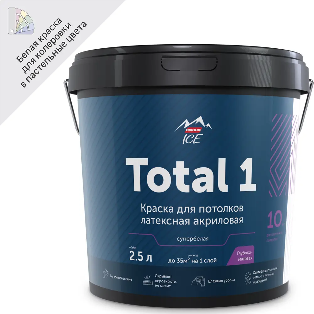 Краска интерьерная Parade Total 2 глубокоматовая для стен и потолков 84871685