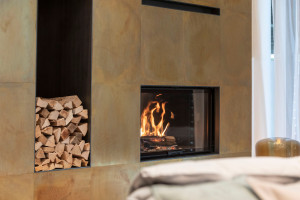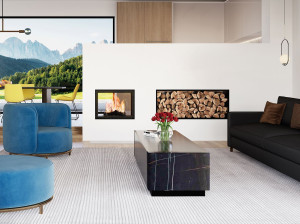 Двухсторонний дровяной камин с каталитическим фильтром