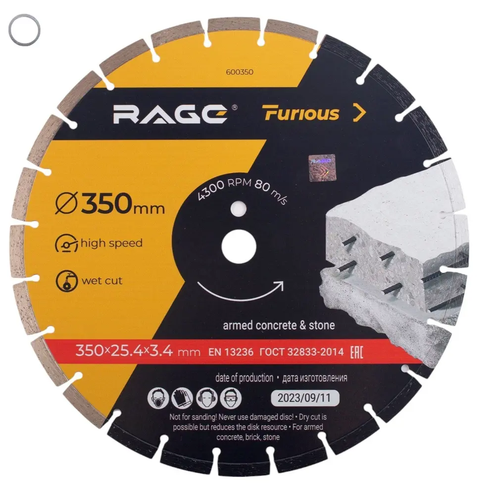Алмазный диск RAGE 350 мм для резки бетона и камня 88483342