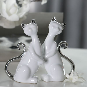 46125 Casablanca, керамическая композиция "Кошки Милли", цвет бело-серебристый (продаются парой)