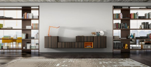 Модульная стенка для хранения, прикрепленная к стене, покрытой лаком из дерева Misuraemme