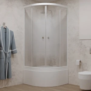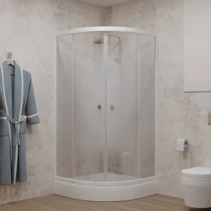 Душевой уголок Triton Лайт А 1/4 круга с низким поддоном 90x90 см белый профиль матовое стекло раздвижной
