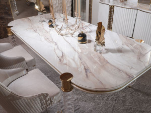 Мраморный овальный обеденный стол