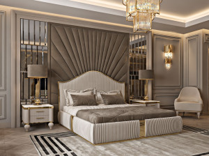 Двуспальная кровать с мягким изголовьем