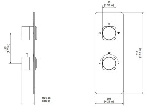 Термостатический смеситель для душа с 2 отверстиями