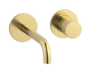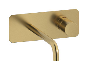Встроенный в стену смеситель для раковины на 2 отверстия с длинным изливом в комплекте с донным клапаном WE ARE IB rr207os Brushed Gold Brera