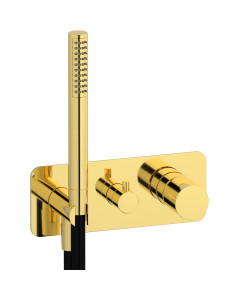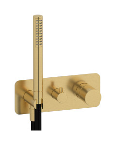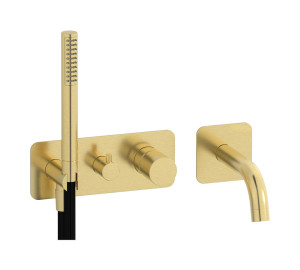 Внешние части встроенного в стену смесителя на 2 потребителя в комплекте с душевым гарнитуром. WE ARE IB rr313os Brushed Gold Brera