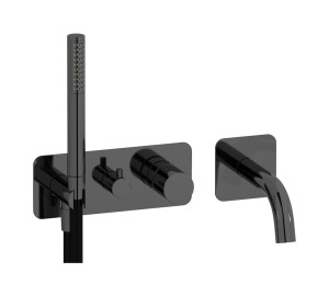 Внешние части встроенного в стену смесителя на 3 потребителя в комплекте с душевым гарнитуром. WE ARE IB rr314np Matt Black Brera