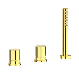 Смеситель на бортик ванной на 3 отверстия с изливом, дивертером и душевым гарнитуром. WE ARE IB rr397ii Pale Gold Brera