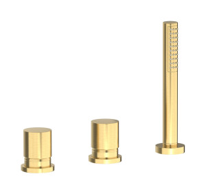 Смеситель на бортик ванной на 3 отверстия с изливом, дивертером и душевым гарнитуром. WE ARE IB rr397os Brushed Gold Brera